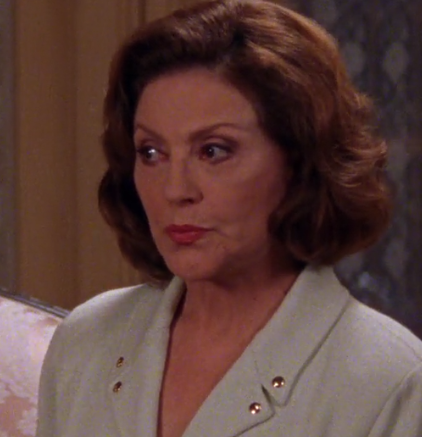 Back home, Judgy WASP Mom asks why they decided to go out-of-town so soon before the wedding. Lorelai then has to tell her that there is no wedding. She then makes this face, which I think is a requirement of all mothers: