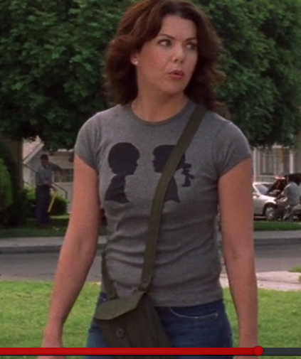 Lorelai is wearing a green “Everyone Loves an Irish Girl” shirt that she probably bought at an Urban Outfitters. How do I know? Because I used to have (actually still may have?) a red shirt exactly like that except it read “Everyone Loves an Italian Girl” and I bought it at Urban Outfitters. At that point in my life, it was the only item of clothing I owned that wasn’t black.