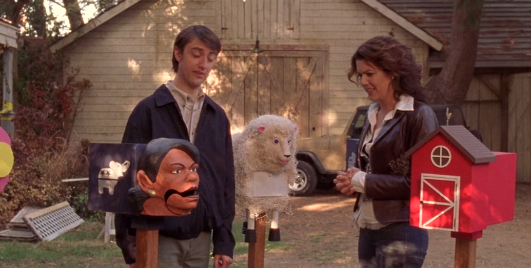 Instead of getting eaten by a Mailbox Sheep, Lorelai is roped in to helping Kirk plan a date with his brother’s ex-girlfriend. The sheep was clearly the least painful of the two outcomes.
